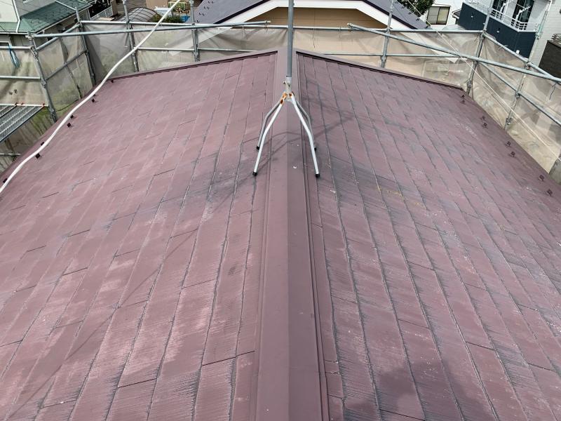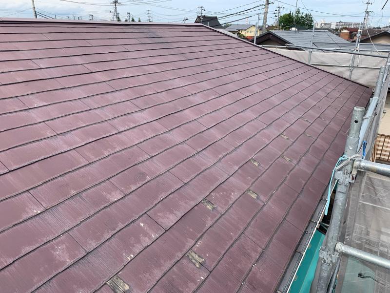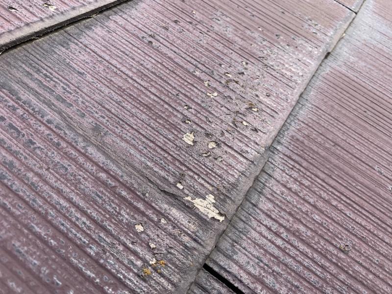 スレート瓦の屋根材でした。屋根全体に色褪せが見られます。