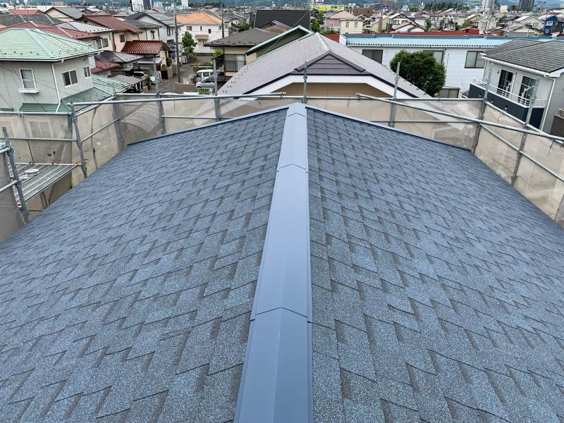屋根カバー・外壁カバー工事では、新規屋根材・新規外壁材を重ねて張るため、見た目の美しさはもちろん防水機能も万全です。今後も安心してお住まいいただけます。お任せ頂きありがとうございました。