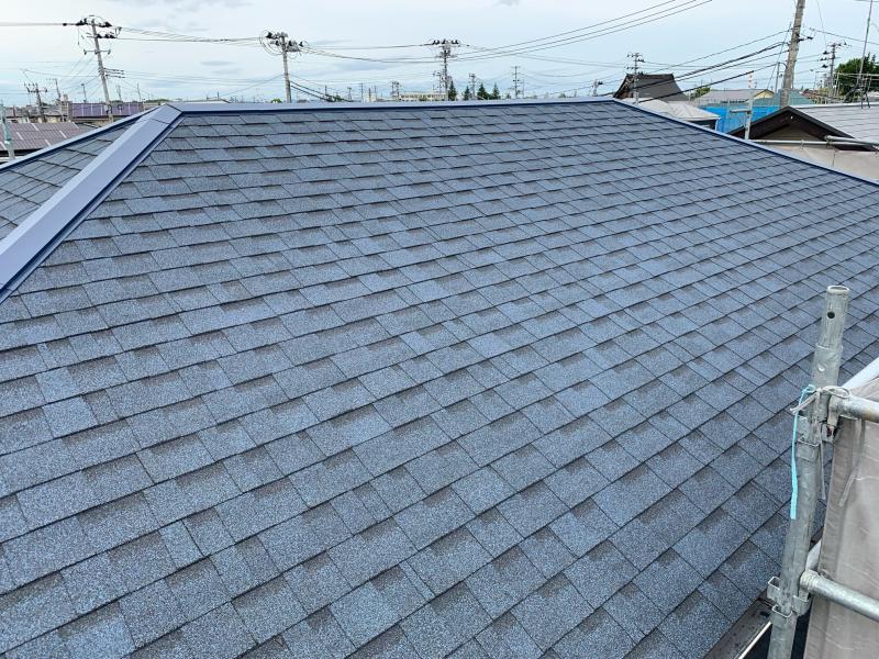 屋根材はオークリッジスーパーを使用しました。洗練されたデザインと優れた耐久性を併せ持つ高品位の屋根材です。