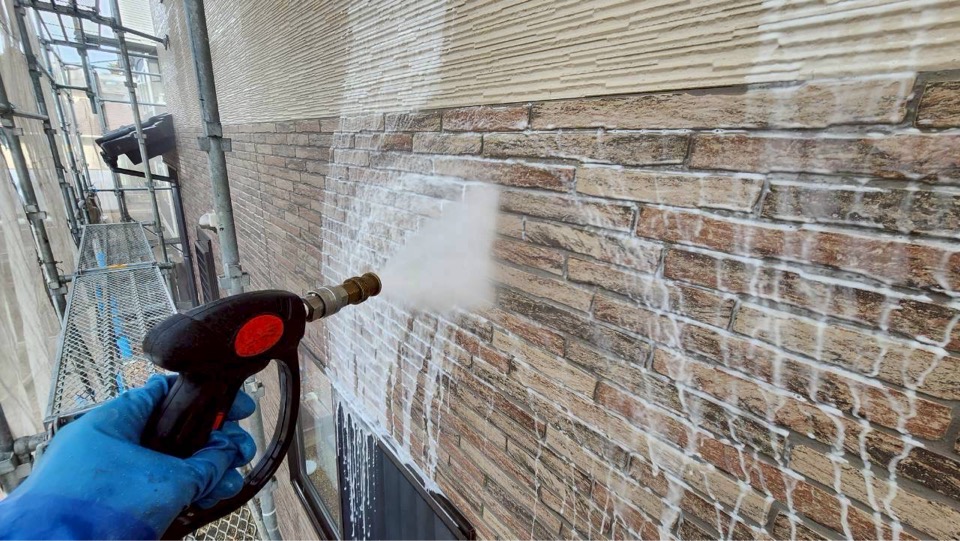 外壁塗装前には「バイオ高圧洗浄」でコケを根っこから落とします。