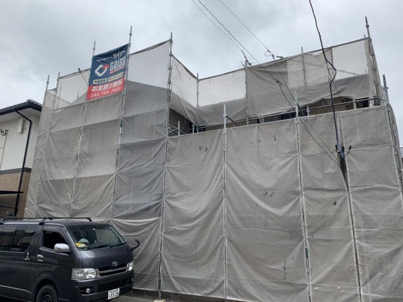 足場を組み始めました。