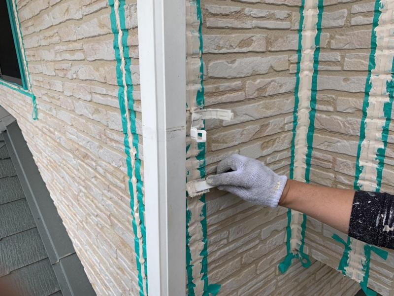 コーキング材をしっかり密着させるため、目地の部分に「プライマー」と呼ばれる下塗り材を塗布してからコーキングを充填します。