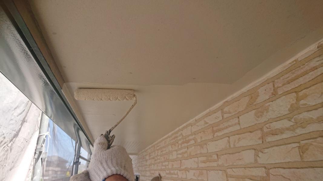 軒天塗装の様子です。