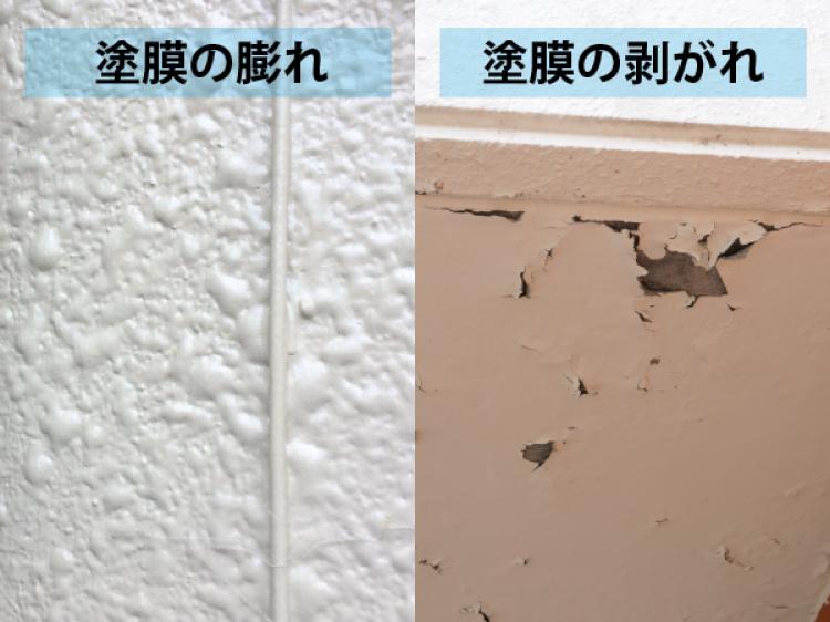 たとえば前回使用した水性塗料(主成分が水で希釈にも水を使う塗料)の上に、今回新たに溶剤系塗料(油性塗料)を塗り重ねると、溶剤(シンナーなど)が水性塗膜を侵して膨れやしわが発生してしまう恐れがあります。